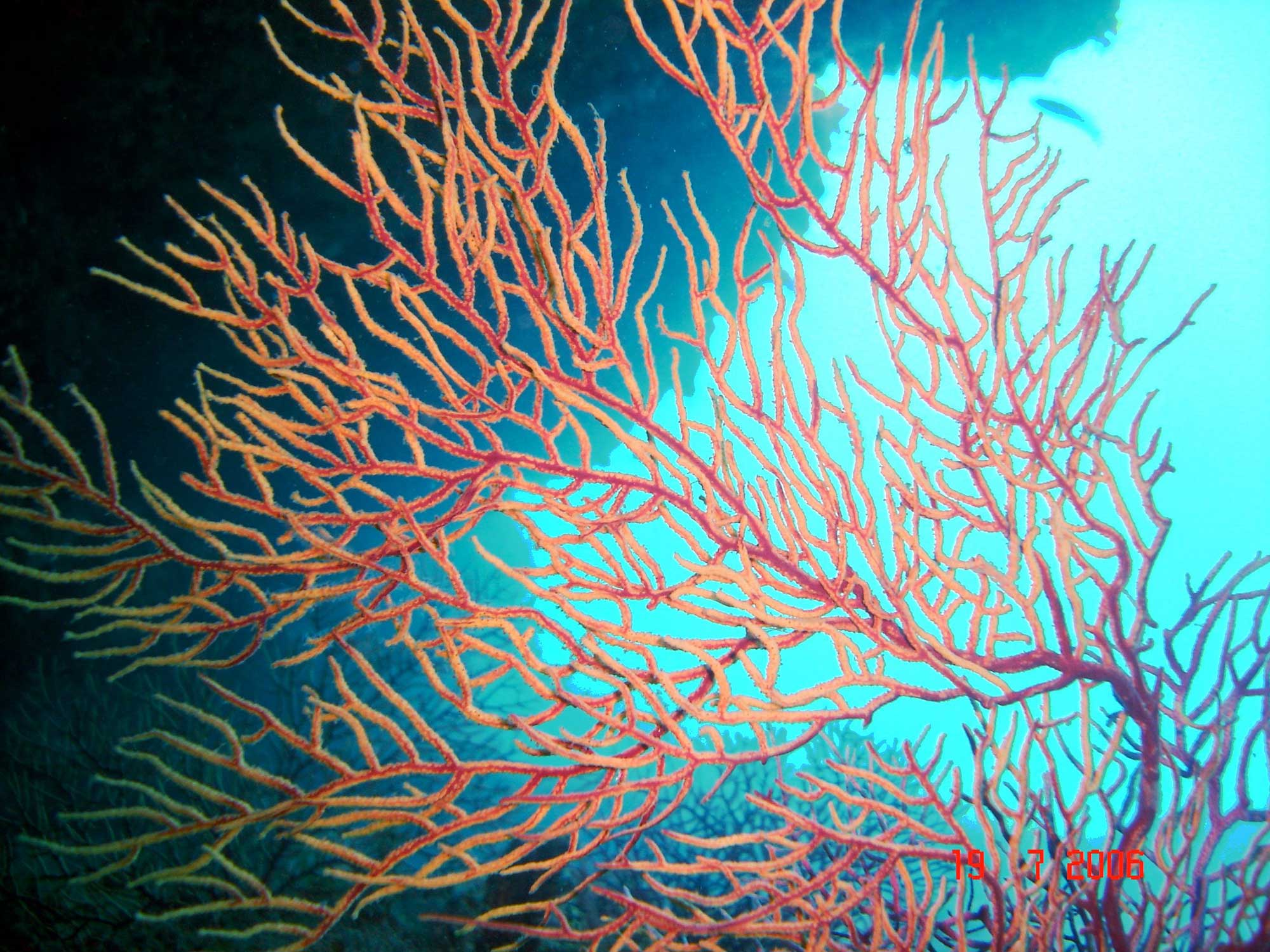 Reef with very high wall, many overhangs and deep crevices. Many large sea fan corals in all colours. Many conger eels.